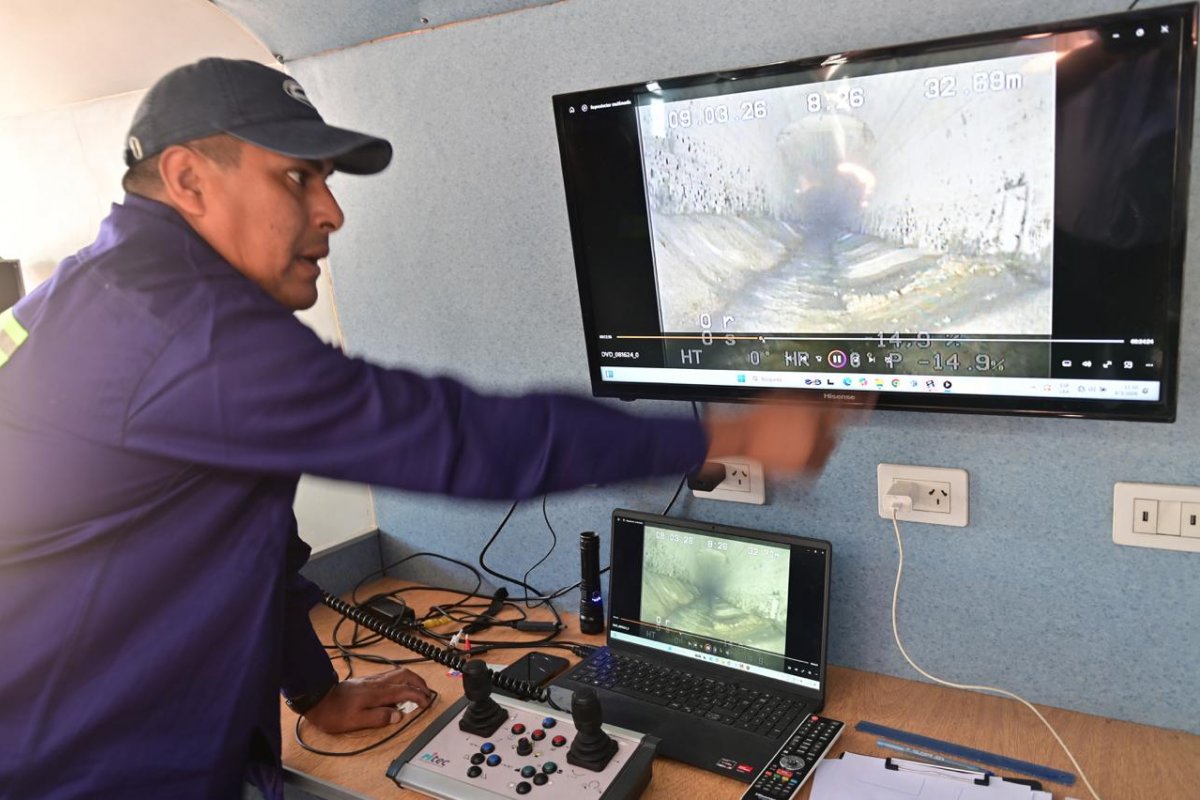 El dispositivo se desplaza dentro de los conductos mediante un sistema motriz de tracción que le permite circular incluso en tramos complejos. Además, cuenta con iluminación LED y una cámara con capacidad de registro en todos los ángulos que transmite imágenes en alta definición hacia una unidad de control instalada en el vehículo de operaciones. Desde allí, los técnicos analizan cada tramo del recorrido mediante monitores y un sistema de control remoto que guía el desplazamiento del equipo dentro de la red subterránea.